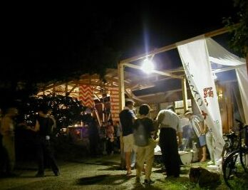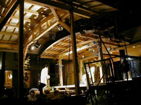 ![]() 終演後にビール片手のこのお人こそ、アトリエ・グローバル主宰、建築工芸家川野紘三さん、その人。どくんご公演の仕掛け人です。川野さんの活動は海を越えて広がり続ける…? |