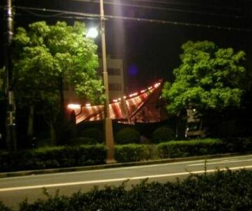 夜の中央町公園。カメラマンの背後には商業高校がある。