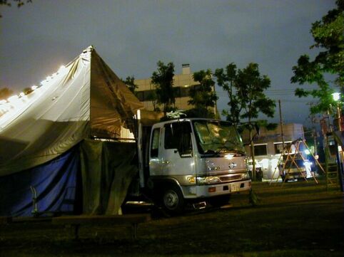 | 夜のテント。向こうに見えるのがジスイズなんですが、ちょっと見えにくい…。 |