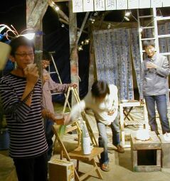 街頭夢売り転戦ゲリラの面々。 上段左から、菜じゃの清野さん、転戦ゲリラの若きホープ高校生の大久保君、元松予備生の勝見君(どくんご入団希望者!?)。 中断左から、一緒にちんどんもやった信大生小松さん、赤羽さん。松予備の青柳さん、バラシのお手伝いをありがとう。 下段左から、菜じゃの関君、ゆうり、転戦ゲリラのドン=竹内君、菜じゃのはるか、転戦ゲリラのエンジン=愛の前田君。 | ![]() |