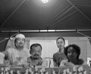 ![]() 受け付けをしてくれた方々。 左から、力丸、石井忍さん、mikiさん、砂粒三駄(サラ・サンダー)さん。 力丸は豊橋から助っ人にやってきてくれました。 mikiさんは宮崎公演、綾公演を観てくれて、綾ではバラシにずっとつきあってくれました。今回は宮崎から飛行機と電車を乗り継いではるばる九州の香りを運んでくれたのでした。 |